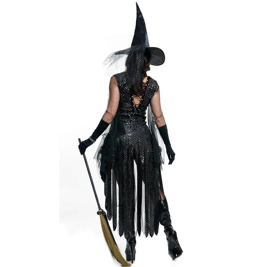 Women's Black Sequins Witch Halloween Costume