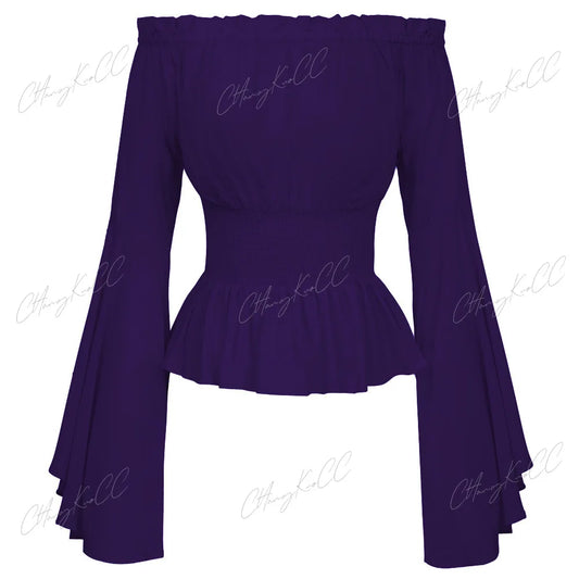 Women Off Shoulder Sleeves Shirt Steampunk Pirate Medieval Halloween Costume