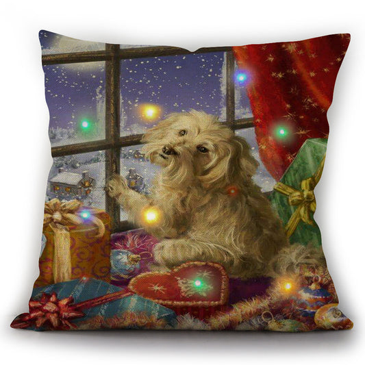 Christmas Cat And Dog LED Bright Light Up Linen Pillow Cover