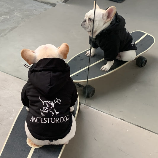 Warm Cotton Winter Anc'estordog Hooded Dog Jacket in Black