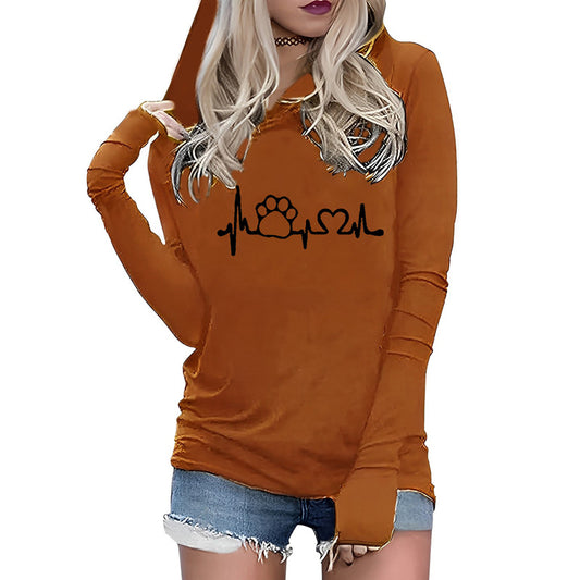 Pawprint Heartbeat Hooded Long Sleeve Plus Size Shirt in Brown and Black