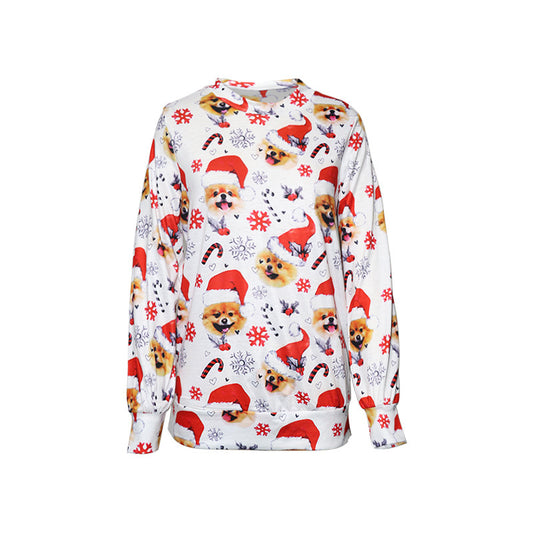 Women's Pomeranian Printed Ugly Christmas Crew Neck Sweater