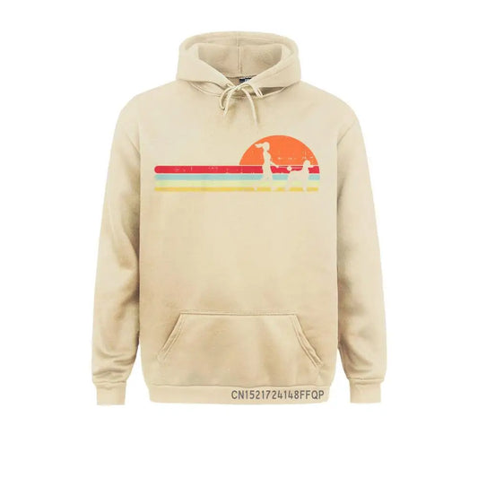 Retro Sunset Woman Walking a Poodle Cotton Polyester Blend Hoodie