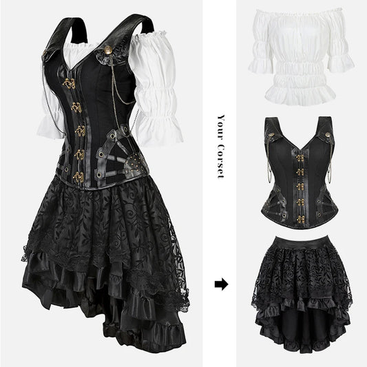 Black Steampunk Women's Pirate Corset Dresses Halloween Costume