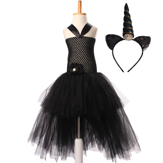 Girls Black Unicorn Tutu Dress Halloween Costume Set